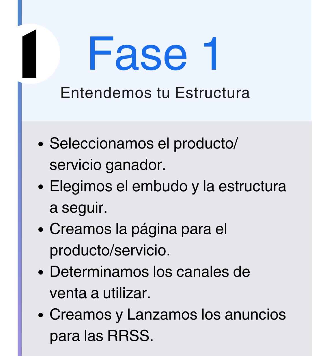 Cobramos una comisión inicial, donde te construimos una base sólida e inquebrantable para tu negocio, empezando por establecer el proceso de adquisición y embudo de venta más adecuado.