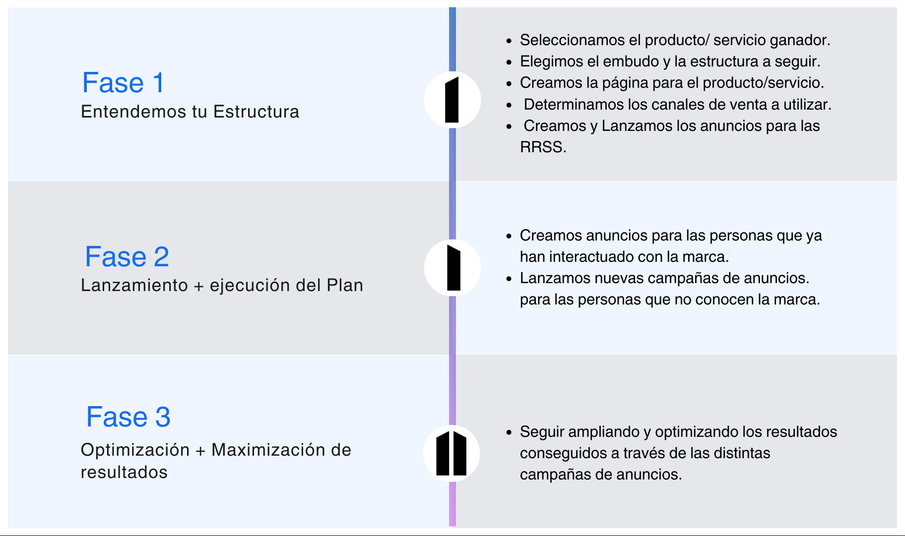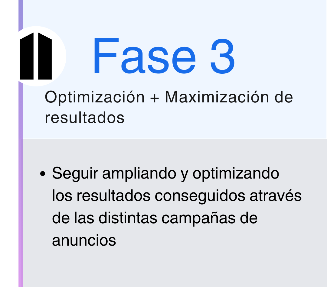 Una vez implementados trabajamos en base a resultados, por lo que estamos constantemente analizando, pivotando y redirigiendo los recursos hacia la dirección más eficiente y efectiva para tu negocio, ya que la mayor parte de nuestros ingresos como socio de crecimiento, proceden de un % de las ventas que ayudamos a generar.